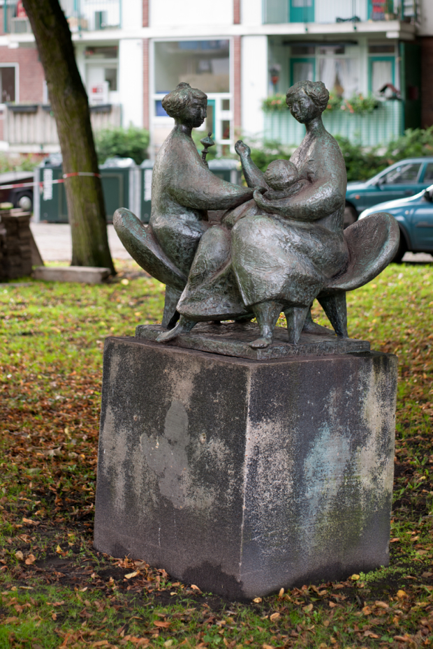 Vraagt de man de vrouw ten dans of is dit gewoon een stel dat vrolijk keuvelend aan het werk gaat? Toen het beeld ‘Vrouw en [...]